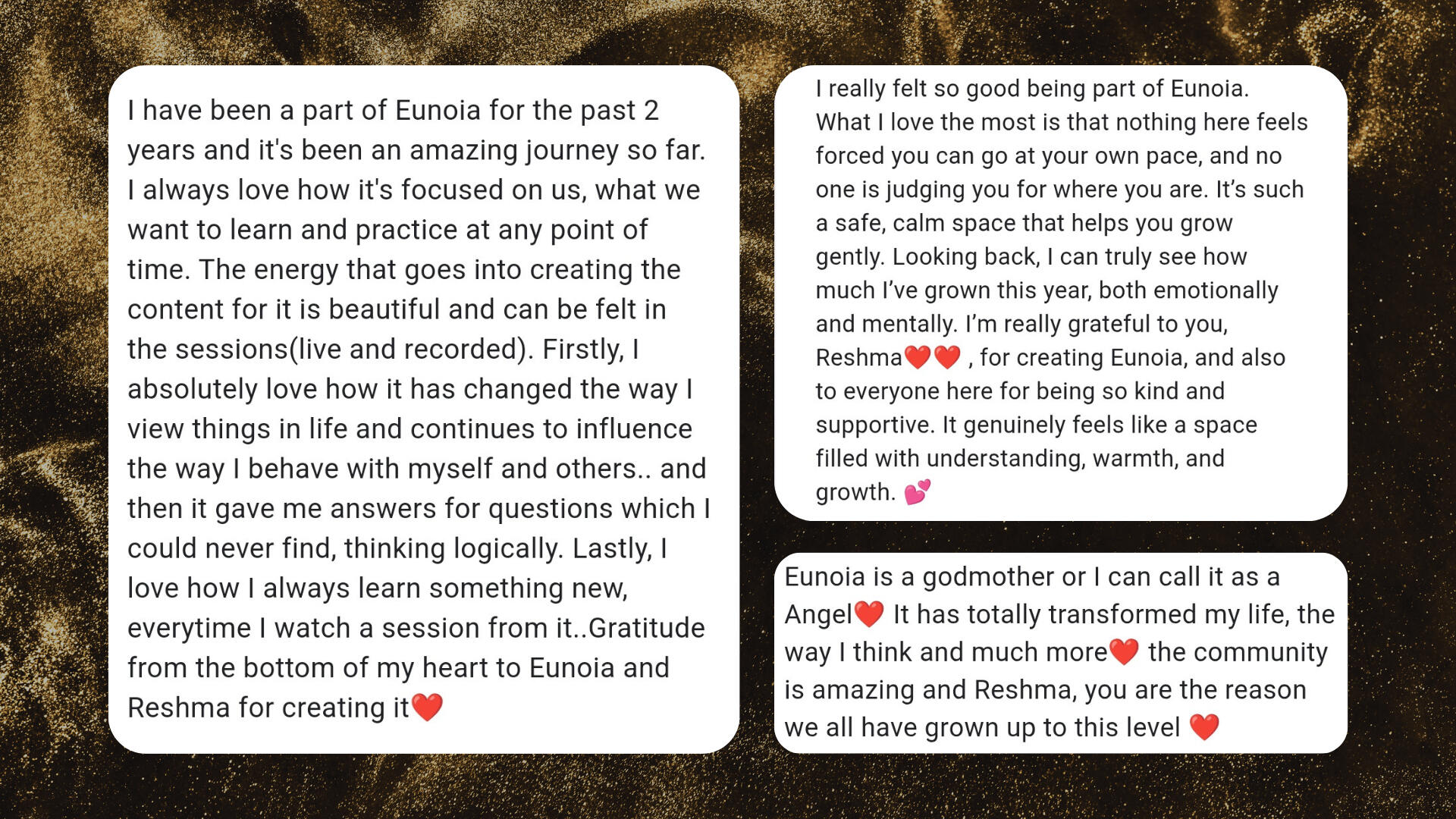 And if there’s one thing I’ve witnessed over and over again, it’s this:People don’t join Eunoia because of the content, or the calls, or even the community.